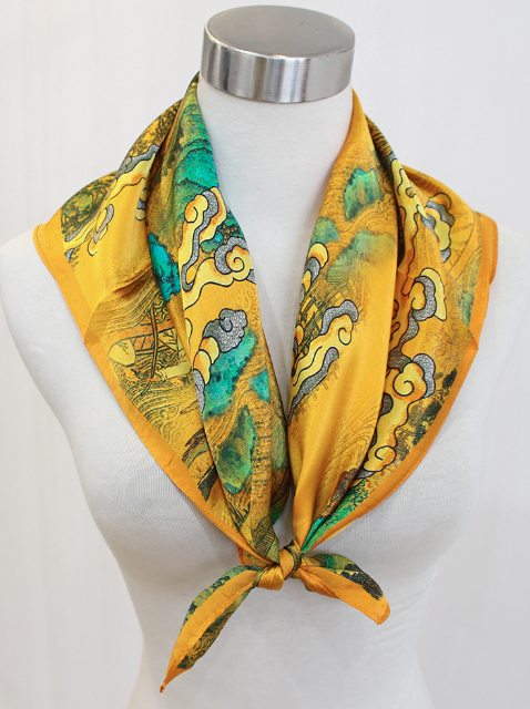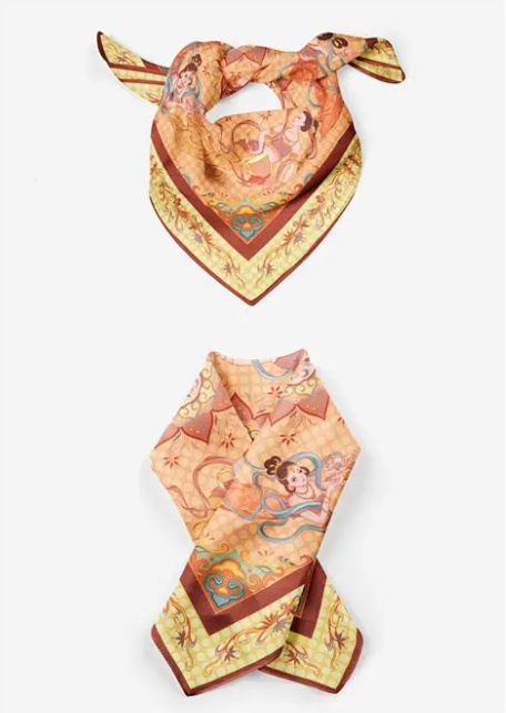 灵感源自敦煌莫高窟壁画飞天形象,100%桑蚕丝材质,手工绘制,每一条都独一无二。